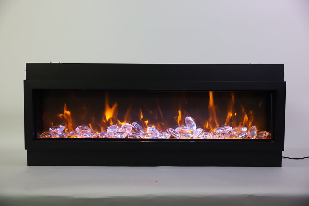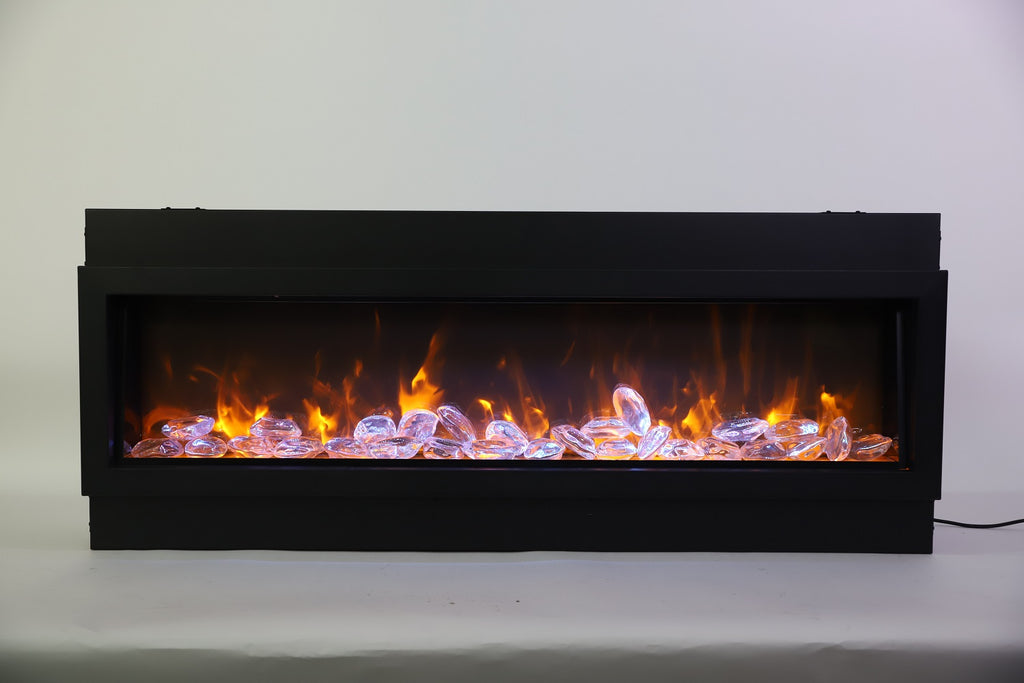 The Deep series gives you a 30.48cm depth and multiple length options, as well as giving you the ability to install your fireplace with your choice of finishing material built right up to the glass for edge to edge viewing or the using the provided black metal trim.